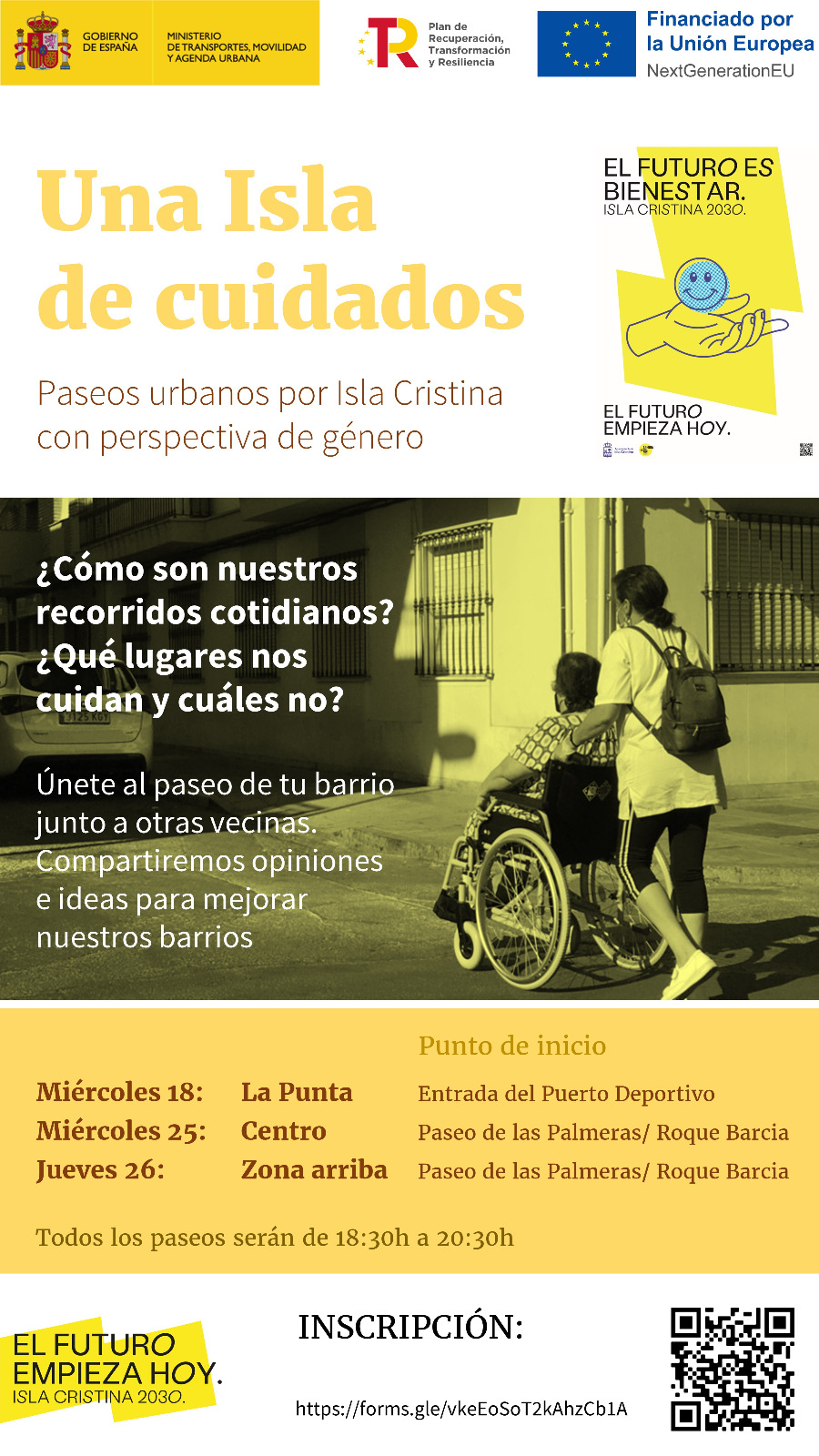 Como parte del proceso de diagnóstico del Plan de Acción de la Agenda Urbana de Isla Cristina, se han desarrollado varias jornadas de paseos por la ciudad, de la mano de colectivos específicos, como mujeres o asociaciones vecinales, junto a quienes se ha querido descubrir cuáles son los aspectos de mejora que presentan nuestras calles y barriadas, con el fin de convertirlas en espacios de convivencia más seguros, alegres, cómodos y transitables para todos y todas.